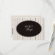 The front features a striking black oval centerpiece framed by delicate ivory pinstripes, creating a balanced composition that feels both stately and romantic. Elegant serif lettering paired with graceful script typography gives the design a heritage-inspired look reminiscent of estate weddings, private clubs, and heirloom paper goods. The oval frame adds a soft vintage focal point while maintaining a clean, structured layout.