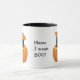 C'est une mignonne tasse d'Halloween ! Un chaton noir flou surgit d'un citrouille orange. La même image est imprimée des deux côtés de la tasse, et le texte personnalisable au milieu dit "Meow.. je veux dire BOO !"