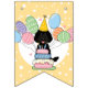 Faîtes de votre canard noir un anniversaire spécial avec notre adorable design sur le thème du chien avec un casquette de fête et des ballons colorés.