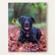 Black Labrador Dans Les Feuilles D'Automne
