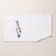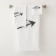 Simple yet stylish lettering design in dark gray on your bathroom towels. Combined with a matching gray arrow pointing slightly upwards. Personalize it with your name or any word you like.