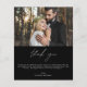 Budget Mariage Carte de remerciements manuscrite qui a une photo à l'avant et à l'arrière. Les cartes de remerciement contiennent une typographie de script moderne, blanche et noire, lettrée à la main, élégante, simple et moderne à utiliser après que vous minimaliste simple célébration de mariage.