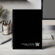 Elevate your daily planning with this modern minimalist notebook, designed in a clean black-and-white color palette that suits both professional and personal use. Your custom name appears in the lower right corner in a refined line-style font, paired with a striking monogram initial created in the distinctive Monoton typeface. With its simple, contemporary layout this personalized notebook stands out for its sleek, stylish design. Perfect as a custom business notebook, journaling companion, or thoughtful personalized gift, it offers fully customizable text and monogram options to match your unique style. Ideal for professionals, students, creatives, and anyone who loves modern stationery.