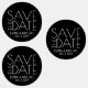 Mariage élégant moderne Enregistrer la date Mariage Favoriser les Étiquettes avec le titre "Enregistrer la date" avec le nom de la mariée et le nom du marié et la date mariage dans le style de police sans serif moderne.