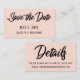 Gardez vos invités mariages en boucle avec tous vos détails grâce à ces jolies cartes d'insertion de mariage complètes. Ces jolies cartes reflètent un style élégant et décontracté. Les superpositions de texte élégantes ont été conçues à l'aide d'une police de script moderne, audacieuse et décontractée en noir. L'un des côtés dit "Sauvez la Date" et l'autre, simplement "Détails". Utilisez les champs modèles pour customiser ces cartes de boîtier avec vos informations personnelles. Imprimé à l'aide de la "technologie carte de visite", la taille pratique sera facile à garder à portée de main. Envoyez-les avec vos envois traditionnels, et gardez-en quelques-uns pour les partager avec ceux qui en ont besoin d'un ou deux de plus ! Le arrière - plan est un rose pâle subtil et cette couleur modifiable peut être changée en n'importe quoi de votre palette mariage que vous choisissez ; tout le texte modifiable apparaît en noir. // 89 // Conçu par Melody Watson pour Paper Muserie.