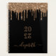Un élégant arrière - plan noir avec de faux gouttes d'or, look goutte de peinture. Modèle pendant un an (à l'envers) Personnalisez et ajoutez un nom. Le nom est écrit avec un grand script doré de style moderne et écrit à la main. Parfait pour l'école, le travail ou l'organisation de votre vie personnelle/familiale. Pour que les swashes ne suppriment que le nom de l'échantillon, laissez les espaces ou émoticônes devant et après le nom.