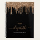 Un élégant arrière - plan noir avec des gouttes, la peinture goutte à goutte. Personnalisez et ajoutez une année, un nom et un titre. Le nom est écrit avec un grand script doré de style moderne et écrit à la main. Parfait pour l'école, le travail ou l'organisation de votre vie personnelle/familiale. Pour que les swashes ne suppriment que le nom de l'échantillon, laissez les espaces ou émoticônes devant et après le nom.