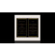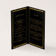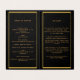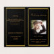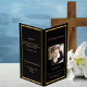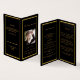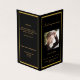 Un programme élégant de 4 pages. Un arrière - plan noir, un cadre en faux or et un espace pour votre photo. Personnalisez et ajoutez le nom, les dates et votre texte.