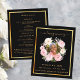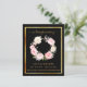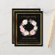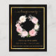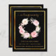 Un programme élégant de 2 pages. Un arrière - plan noir, un cadre faux or et l'espace pour votre photo Décoré d'une couronne fleurie rose et blanche. Personnalisez et ajoutez le nom, les dates et votre texte.