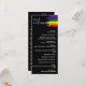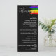 Programme de mariage lgbt de charme avec le drapeau de la fierté arc-en-ciel dessiné avec des coups désordonnés contre un arrière - plan noir. Programme de mariage gay en noir avec traits de pinceau arc-en-ciel. Programme de mariage lesbien avec des coups de pinceau de couleur arc-en-ciel.