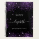 Black background, white text. Decorated with purple faux glitter dust. Personalize and add a year, your first name and a title. The name is written with a modern hand lettered style script with swashes.