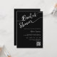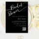 Donnez le ton d'une fête chic avec cette invitation à la douche nuptiale noire avec un élégant script écrit à la main et une disposition épurée et minimaliste. Un code QR scannable offre aux clients un moyen simple d'accéder à RSVP ou de consulter votre registre de cadeaux. L'arrière - plan noir audacieux avec un script blanc rend cet invitation à la fois moderne et sophistiqué, parfait pour honorer la future mariée avec style. Customisez tous les champs de texte pour les rendre uniques.