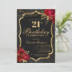 Celebrate in unforgettable style with this dramatic black and gold 21st birthday invitation. Featuring an elegant ornamental frame, rich red florals, and a luxe-inspired layout, this design is perfect for a sophisticated evening celebration.