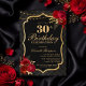 Celebrate in unforgettable style with this dramatic black and gold 30th birthday invitation. Featuring an elegant ornamental frame, rich red florals, and a luxe-inspired layout, this design is perfect for a sophisticated evening celebration.