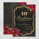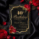 Celebrate in unforgettable style with this dramatic black and gold 40th birthday invitation. Featuring an elegant ornamental frame, rich red florals, and a luxe-inspired layout, this design is perfect for a sophisticated evening celebration.