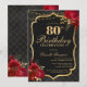 Celebrate in unforgettable style with this dramatic black and gold 80th birthday invitation. Featuring an elegant ornamental frame, rich red florals, and a luxe-inspired layout, this design is perfect for a sophisticated evening celebration.