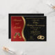 Une invitation de 50 ans de mariage anniversaire de mariage noir rouge et or. Des verres de champagne qui s'entrechoquent et des anneaux de mariage joints ensemble, ornent cette carte de fête.