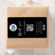 Customisez ces minimalistes noirs "Black Shipping Package QR Code Logo Box Étiquettes" pour l'emballage d'entreprise, avec un logo commercial blanc, le message "Merci pour votre commande" dans un magnifique script, QR Code, et des poignées de médias sociaux (Instagram, Facebook). Les autocollants sont destinés à passer verticalement sur le couvercle de la boîte d'emballage. Veuillez contacter le concepteur du magasin pour plus de personnalisation si nécessaire.