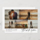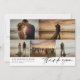 Dites merci à vos invités mariages avec une carte photo collage où vous pouvez présenter cinq de vos belles photos de mariage dans un collage asymétrique propre. Ajoutez vos noms et votre date de mariage dans une police noire moderne. Le Merci est écrit dans un script de signature de style vintage. Sur le dos, vous pouvez écrire à la main un message de remerciement personnel sur l'arrière - plan légèrement aligné. Le mariage de collage photo parfait pour montrer vos photos préférées du meilleur jour de votre vie avec vos noms dans une police moderne combinée avec un script rétro disant merci.
