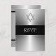 Black et argent chrome look métallique Star de David Bar Mitzvah invitation RSVP.