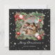 Elégante carte de Noël en noir avec une photo à l'intérieur d'une couronne de Noël aquarelle de branches d'épinette, décoration de Noël et de sainte. Personnalisez facilement cette carte de Noël avec votre photo et votre texte.