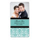 Black Turquoise Damask Photo Wedding Étiquettes