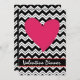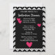 Envoyez cette invitation design de chevrons tendance et élégante pour votre dîner de Saint-Valentin ou autre événement de Saint-Valentin. Cette invitation est entièrement personnalisable pour vos informations sur votre événement. Un coeur rouge asymétrique apparaît en couleur au-dessus de ce design sophistiqué ziz en chevron noir et blanc. Un côté de cette faire-part d'invitation a le design de chevrons noir et blanc et un grand coeur rouge. Un bar noir se trouve en dessous du coeur avec des mots personnalisables "Dîner Saint Valentin". L'autre côté a une zone noire avec une bordure en chevron avec de petits coeurs aléatoires et toutes vos informations sur l'événement. Entièrement personnalisable. Correspondance avec la coordination des timbres, enveloppes, autocollants et étiquettes d'adresse de retour.