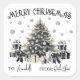 Add a festive and elegant touch to your holiday gifts with this square Christmas gift tag sticker featuring a sophisticated watercolor Christmas tree. "Merry Christmas" is displayed near the top in graceful script with a gentle curve for a soft, festive feel. The center showcases the detailed black and white Christmas tree with a subtle green tint, surrounded by wrapped presents and delicate falling snowflakes.