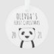 Commemorate baby's first Christmas with this cute keepsake ornament, featuring a simple modern black and white drawing of a panda. Personnalize it baby's name and the year in hand-drawn printing font.