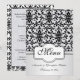 Black and white damask pattern with swirls and birds Wedding Menu. You can adjust text according to your requirements.