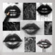 A striking black and white lips collage poster featuring expressive hand-drawn illustrations and abstract textures.