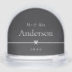 Cet élégant globe de neige noire de Redwood & Vine Design Co. présente votre nom de famille et année mariage sur le devant et une photo mariage sur le dos. Un classique de gardien pour les couples qui fêtent leur première saison de vacances comme mariés.