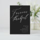La carte de remerciements idéale pour les couples minimalistes ! Avec "Forever Thankful" dans une police de script de calligraphie chic avec vos noms et détails dans une typographie serif en bas à droite. Sur le dos, un collage photo placé sur un arrière - plan gris clair que vous pouvez facilement customiser! Ce produit fait partie de notre suite mariage "Happily Ever After".