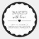 Add a homemade touch to your baked goods with this "Baked with Love from the kitchen of Sticker." Perfect for sealing cookie boxes, bread bags, or a gift jar. Features a scalloped edge, sweetheart divider, and a customizable name. Ideal for home bakers, small businesses, and kitchen gifts.