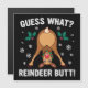 Humour de Noël ludique mettant en vedette un renne se penchant en avant et regardant à l'envers entre ses jambes. Une scène festive amusante avec un charme hivernal et une atmosphère de vacances légère.