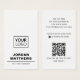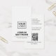 Couleur blanche ou personnalisée, design moderne, professionnel, carte de visite vertical avec champs de modèle pour nom, nom de société/titre, logo (photo ou autre graphique), code QR et informations de contact, y compris les icônes de médias sociaux. Modifiez la couleur de l'arrière - plan, déplacez et redimensionnez les éléments avec l'outil de personnalisation.