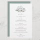 Tombez amoureux de ce design botanique éthérée pour les douches nuptiales d'automne, les fêtes de fiançailles, les mariages et les dîners de répétition. L'élégant design comprend un citrouille d'aquarelle blanche inscrit avec les initiales du couple et flanqué de fleurs blanches, de feuillage vert et de feuilles d'eucalyptus. Personnalisez avec les détails de votre menu.
