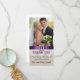 Ce carte photo de mariage personnalisé est parfait pour un mariage à thème mariage campagnard ou vintage. Il possède des éléments de design rustique avec son motif en lin beige IMPRIMÉ arrière - plan et en dentelle vintage damask, mais est sophistiqué avec le ruban en satin violet IMPRIMÉ et broche en diamant carré qui ressemble à des bijoux en costume. Elke Clarke © VEUILLEZ NOTER QUE TOUS LES ÉLÉMENTS SONT IMPRIMÉS SUR LA SURFACE PLATE. Un texte de pays ou vintage pour le texte de remerciement en violet et une police de script d'écriture amusante pour le texte de gris et de violet fonctionne bien avec l'aspect tendance du lin beige ou du tissu burlap associé à la dentelle blanche. Il ajoute une touche de fantaisie à ce design romantique et va bien avec votre photo de mariage vintage. Pour les différents rubans de couleurs, veuillez contacter luxuryweddinginvitations@gmail.com