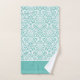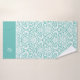 Damas vintages blanches motif sur un arrière - plan bleu turquoise. monogramme facultatif.