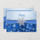 Flocon de neige argenté sur fond de flocons de neige bleus décoré d'une image imprimée de ruban bleu Invitation RSVP