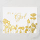 BLANCHE | Gold Floral c'est une carte postale Girl Faire-part de naissance qui présente des fleurs dorées simples avec l'élégant script d'or qui dit "c'est une fille", pour créer une carte postale de filles fabuleuses sans effort.