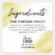 Blanc Moderne Avec Étiquettes Ingrédients D'Encre D'Or. VEUILLEZ NOTER : Aucune encre ou feuille métallique ne sera utilisée pour fabriquer ces étiquettes, ils ne reflèteront aucune lumière ou n'auront pas de revêtement métallique.