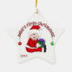 Vous pouvez facilement changer l'année sur ce personnalisable White Père Noël Baby 1er Noël ornement keesake avant de commander. Un bébé est vêtu d'un costume père Noël rouge, et il est rempli de casquette et de texte qui dit "Le premier Noël du bébé !".