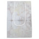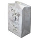 Ce magnifique sac de faveur ou cadeau est parfait pour remercier vos invités ou les membres de votre mariage. Conçu dans le cadre de notre Suite de Mariage Réflexions Blanches, il présente du texte noir sur un arrière - plan reflétant des fleurs et des coeurs blancs. Le texte est entièrement personnalisable et se lit : Merci pour célébrer avec nous! et présente les noms du couple et la date du mariage.