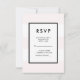 Un mariage magnifique, chic et élégant RSVP! Ce design sobre de 3 bandes horizontales blanches et roses blanches de 3 larges rend un arrière - plan captivant pour la superposition rectangulaire blanche avec une bordure noire contrastée. Les polices sans serif modernes et audacieuses sont disponibles dans tout le texte de l'invitation, qui peut être entièrement customisé à vos besoins. Cette carte RSVP fait partie d'une suite de Faire-part de mariage complète, avec des accessoires de coordination disponibles dans notre boutique !