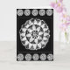 Un morceau de couture d'héritage est la source des mandalas blancs sur cette carte noire. 5 petits mandalas @ dessus et fond, un grand un @ centre. Très saisissant toute la carte d'occasion, indique : Pensée à vous ..... à l'intérieur. Customisez-la pour dire ce que vous voulez .....