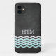 Des chevrons blancs et turquoise sur un arrière - plan en tableau noir décorent ce coque iPhone 5. Le monogramme peut facilement être changé en nom complet ou supprimé si vous le souhaitez.