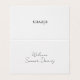 Moderne et minimaliste. Ces cartes de table pliées mariage offrent la possibilité d'inclure des noms d'invités individuellement. Le design comprend un ensemble de polices noires contemporaines contre un arrière - plan blanc immaculé. L'intérieur comprend un massage personnel et l'arrière indique le numéro du tableau
