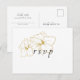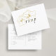 Le chic minimaliste moderne. Cette belle carte postale de réponse RSVP présente un ensemble de polices contemporaines en noir jet contre un arrière - plan blanc immaculé et des détails floraux délicats en faux or.