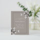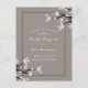 Une illustration originale sur le thème asiatique/japonais de fleurs de cerisier blanches modernes et élégantes avec des branches noires sur un fond gris chaud dans une mise en page classique et élégante.